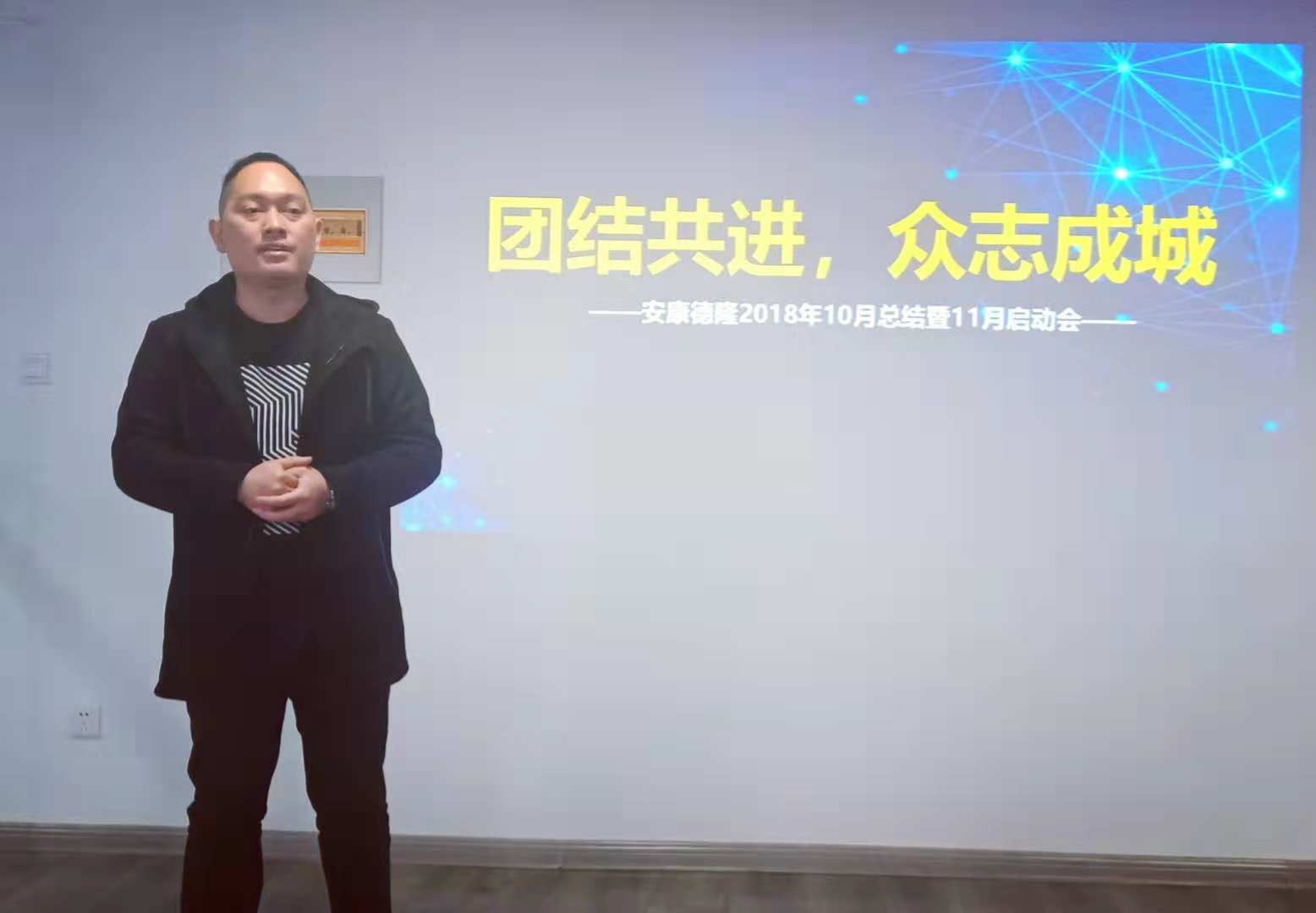 11月迎來了德隆六周年慶典,同時(shí)公司正式簽約58同鎮(zhèn)安康總代理,劉副總分別從公司11月份銷售目標(biāo)、增員、獎(jiǎng)勵(lì)激勵(lì)政策等方面做了計(jì)劃指示,要求銷售部銷售責(zé)任人均簽訂團(tuán)隊(duì)軍令狀和PK戰(zhàn)書,會(huì)議上劉副總分別從市場宣傳及抓能力提升方面提出幾大方向。